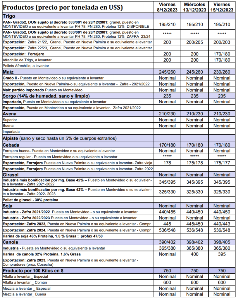 Montevideo | Todo El Campo | Como todos los viernes, la Cámara Mercantil de Productos del País (CMPP) publicó la actualización de los precios de los productos agrícolas.