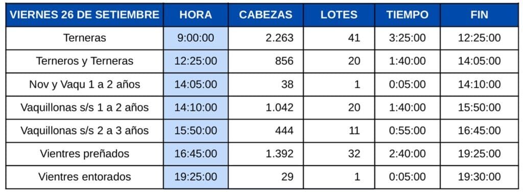 En total se vendieron 6.270 vacunos de una oferta de 6.618, lo que representa un 94,7% de colocación; y el total de ovinos comercializados fue de 1.290 de 1.290 en oferta, lo que significa que se logró una colocación del 100%.