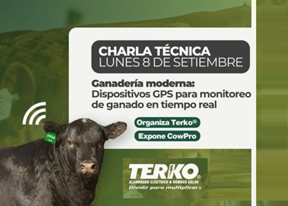 Respecto a la charla precisó que será en la sala de conferencias el 8 de setiembre, a las 17.00 horas, con el título “Ganadería moderna: dispositivos GPS para monitoreo del ganado en tiempo real”, un tema nuevo que Terko incorpora y que sin dudas es una tecnología que interesará a todos.