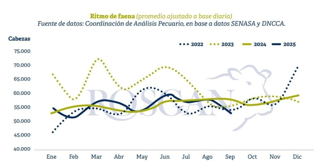 Si este fuera el caso, más allá del momento coyuntural que pudo haber afectado la actividad de setiembre -y que aún podría estar condicionando octubre-, estaríamos comenzando a observar un cambio estructural en la dinámica de producción. Este cambio no solo estabilizaría, al menos parcialmente, las curvas de oferta, sino que, además -y fundamentalmente- permitiría avanzar hacia una producción de animales más pesados de manera mucho más eficiente y sostenible en el tiempo.