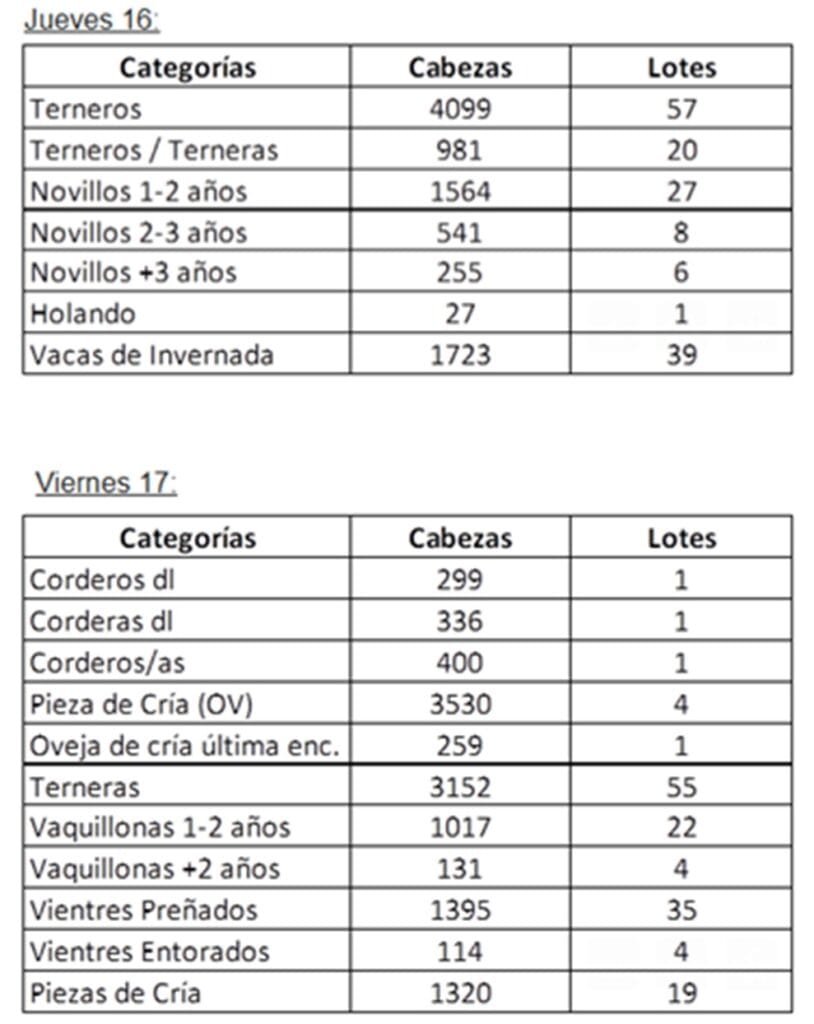 La oferta total es de 16.319 vacunos y 4.824 ovinos, con transmisión de Todo El Campo.