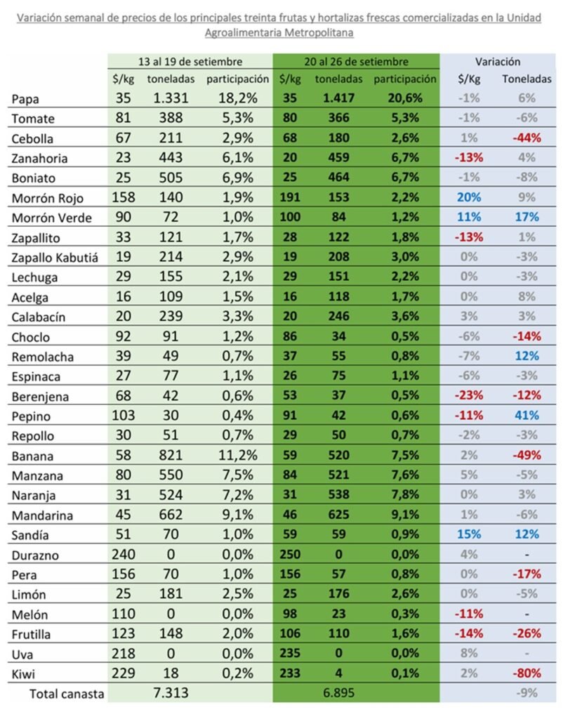 En el caso de chauchas, la situación se mantiene estable, sin variaciones relevantes en precios. Se espera que, con el avance de la primavera, la oferta de este grupo continúe en aumento, generando presiones bajistas sobre los valores de referencia.
