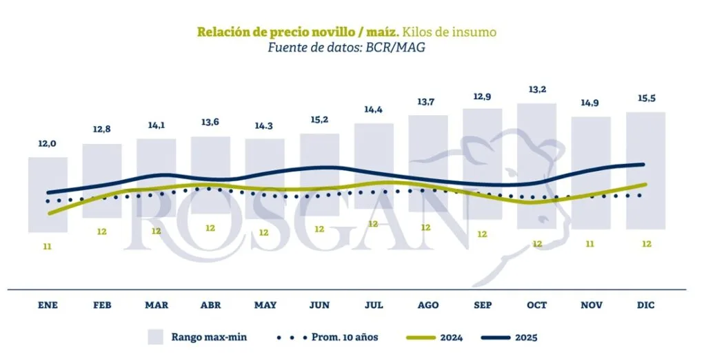 Algo similar está ocurriendo en Uruguay. Un análisis del consultor uruguayo Eduardo Blasina destaca que en 2025 el país registró una disminución en la edad de faena, al mismo tiempo que se lograron animales más pesados. Según su evaluación, este proceso ya puede considerarse tendencial y podría profundizarse en los próximos años. De manera categórica, el análisis señala que este cambio tiene una base clara: mayor uso de grano, mayores ganancias de peso y una relación insumo/producto ampliamente favorable.