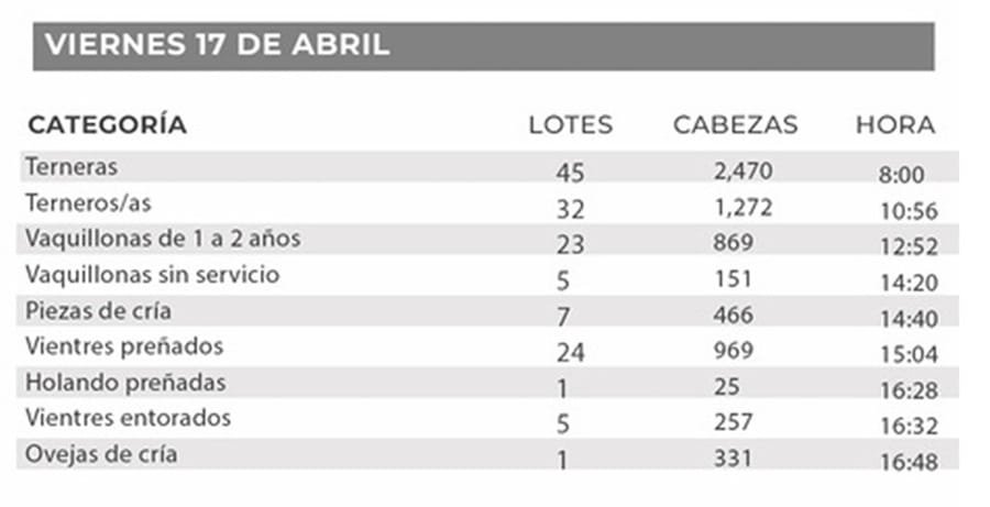 La oferta es de terneras, terneros y terneras, vaquillonas, piezas de cría, vientres, Holando y ovejas de cría.