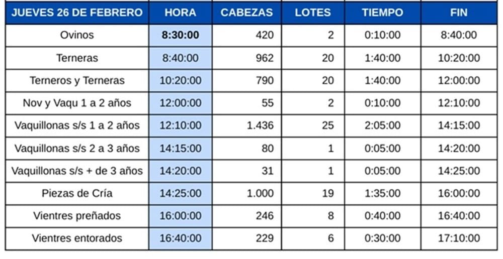 Se venderán los ovinos, las terneras, los terneros y terneras, novillos y vaquillonas de 1 a 2 años, escalera de vaquillonas, piezas de cría, vientres preñados y entorados.