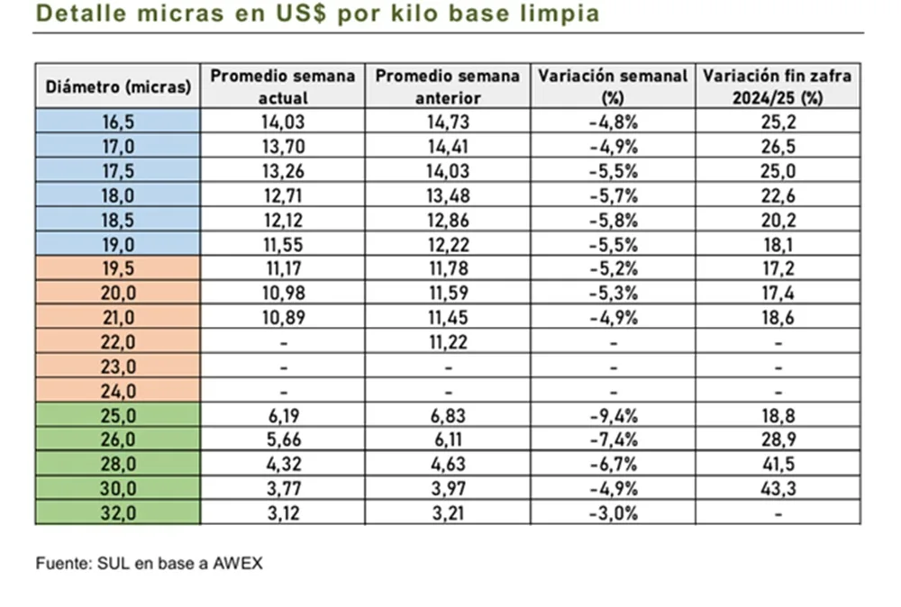 Reporte del SUL sobre cómo terminó la semana para las lanas.