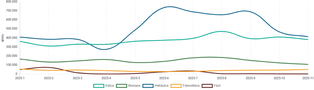 Es de destacar que el 8% de la electricidad generada en todo el 2025 se exportó; la mayor proporción fue de origen hidráulico.