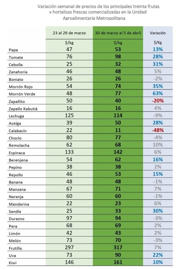 El informe semanal del Observatorio Granjero sobre precios e ingresos a la Unidad Agroalimentaria Metropolitana (UAM) así lo señala. El siguiente es el informe completo.