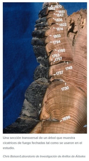 Thomas W. Swetnam, profesor emérito de la Universidad de Arizona y dendrocronólogo (dendrocronología es la disciplina que estudia los anillos de crecimiento de los árboles para entender procesos ambientales, climáticos y culturales del pasado) desde hace mucho tiempo en el Laboratorio de Investigación de Anillos de Árboles, fue coautor del estudio, que se basó en el extenso archivo de secciones transversales de árboles del Laboratorio de Anillos de Árboles que proporcionan siglos de historia de incendios de la región. Los científicos de incendios han sabido durante años que los nativos americanos, y especialmente los apaches occidentales, usaban el fuego para manejar el paisaje, según registros etnográficos y entrevistas con personas apaches, dijo Swetnam.