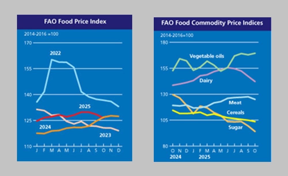 A pesar de la baja, el índice FAO está por encima de octubre de 2024 en un 2,7%.