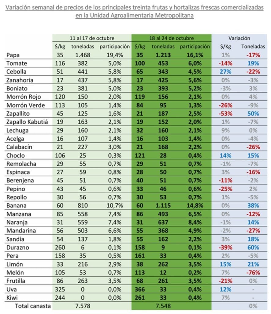 Informe del mercado del Observatorio Granjero para la semana del 18 al 24 de octubre.