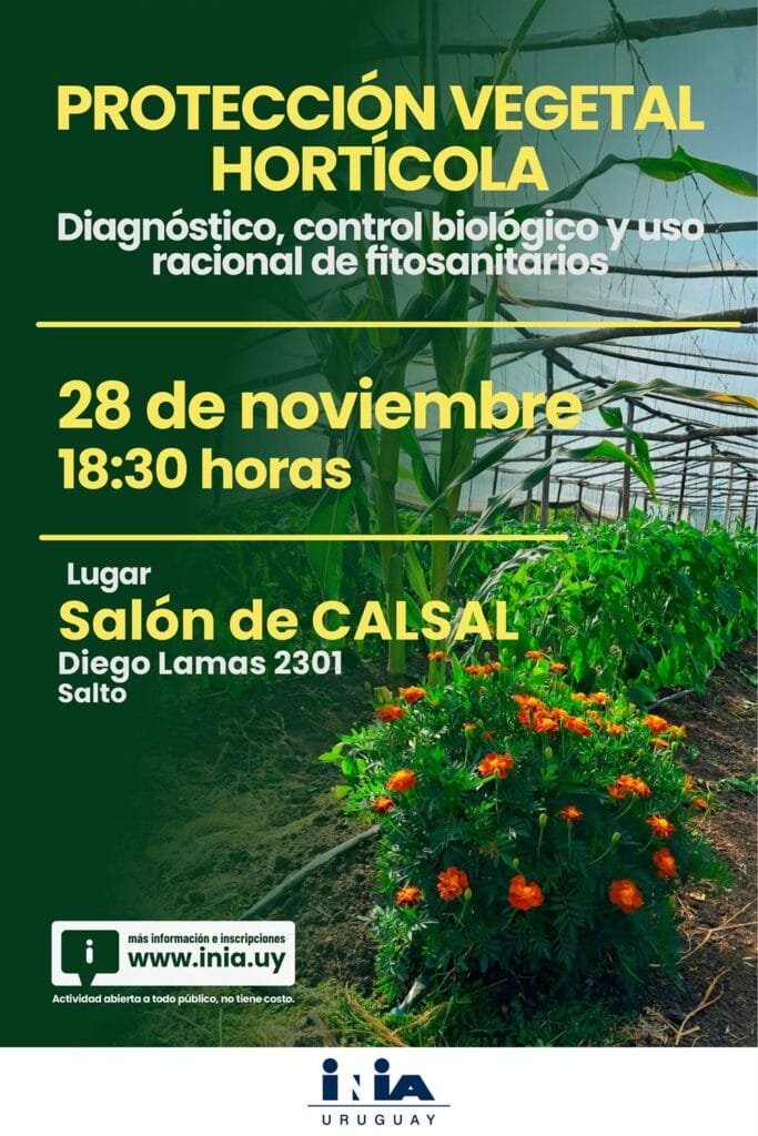 Salto | Todo El Campo | El Instituto Nacional de Investigación Agropecuaria (INIA) Salto Grande, invita a participar de la actividad “Protección Vegetal Hortícola: diagnóstico, control biológico y uso racional de fitosanitarios”.