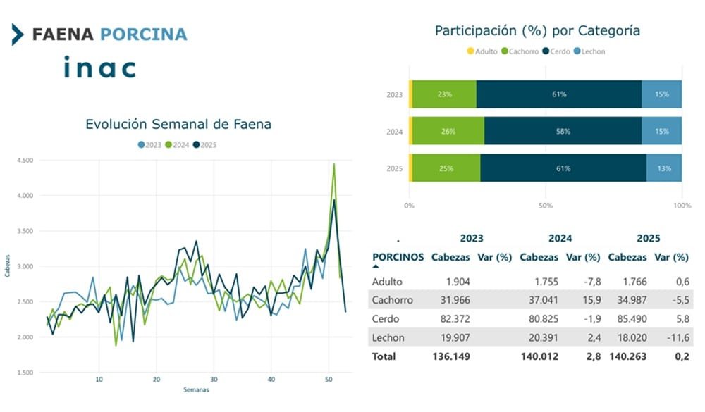 En Uruguay, según información del Instituto Nacional de Carnes (INAC), la faena en 2025 fue de 140.263 cabezas, 0,2% más que en 2024.