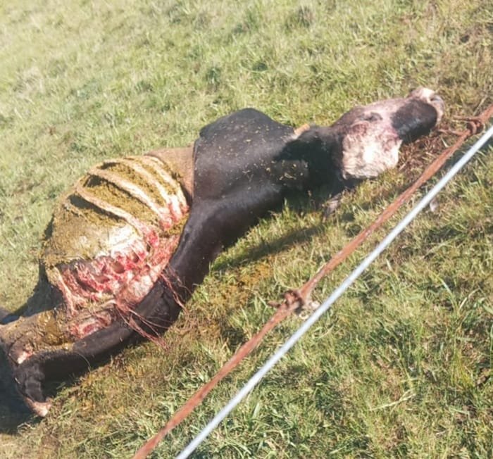 Ahora sin lanares al menos en los predios que lindan al camino, nos encontramos que matan una vaquillona preñada solo para robarle la carne de los cuartos.
