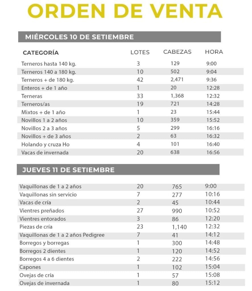 A las 09.00 se retoma la actividad de los martillos con una oferta destacada de vaquillonas, vacas de cría, vientres preñados y entorados, las piezas de cría, vaquillonas pedigrí, y cierran los ovinos.