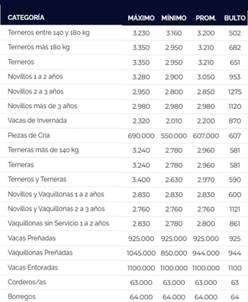 Vacas gordas especiales entre US$ 1.145 y US$ 1.245.
