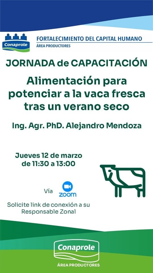 Montevideo | Todo El Campo | El próximo jueves 12 de marzo se retoma la capacitación desde el Área Productores de Conaprole a través de la plataforma Zoom.