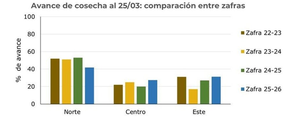 La zona norte es la que más avance lleva en la cosecha, el 42%; le sigue el este con el 33% y el centro (27%).