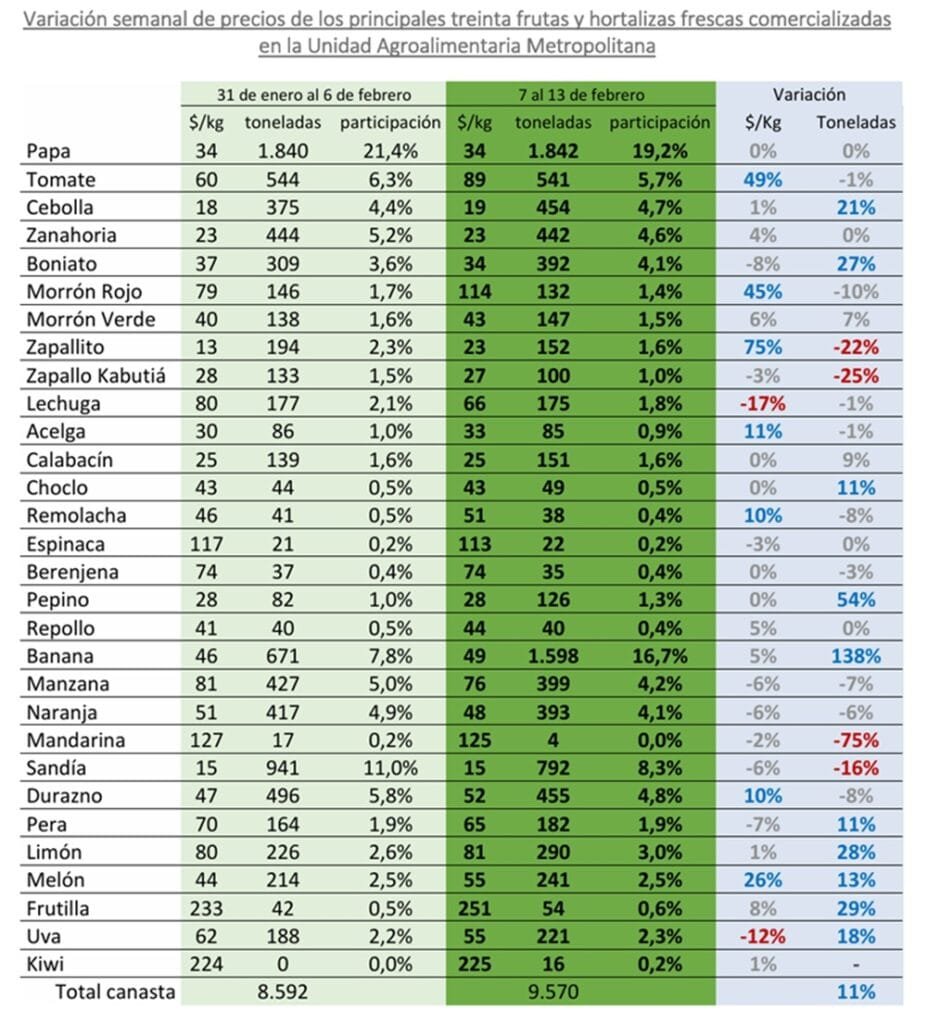 Por el contrario, en brócoli, coliflor, repollo y cebolla de verdeo, persiste la escasez de oferta, manteniéndose la tendencia alcista en los precios que se viene observando desde semanas anteriores.