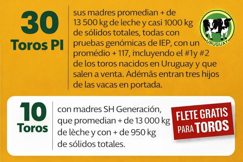 De los 30 toros PI se destaca por parte de la firma que sus madres promedian más de 13.500 kg de leche y casi 1.000 kg de sólidos totales. Todos con pruebas genómicas de IEP, con un promedio mayor a 117.