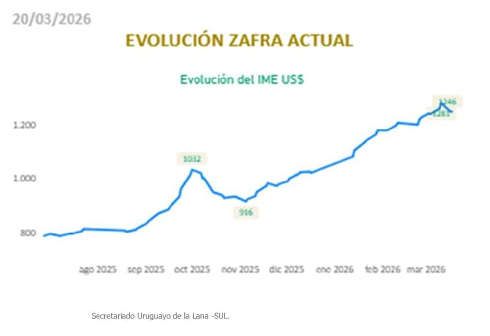 Montevideo | Todo El Campo | Tras varias semanas de ganancias consecutivas, la racha alcista de la lana se interrumpió. El Indicador del Mercado del Este (IME) cerró con una caída del 1,8% en moneda local (AU$ 17,51) y del 2,0% en dólares estadounidenses (US$ 12,46), influenciado por un debilitamiento del dólar australiano (0,712 US$/AU$), informó el Secretariado Uruguayo de la Lana (SUL).