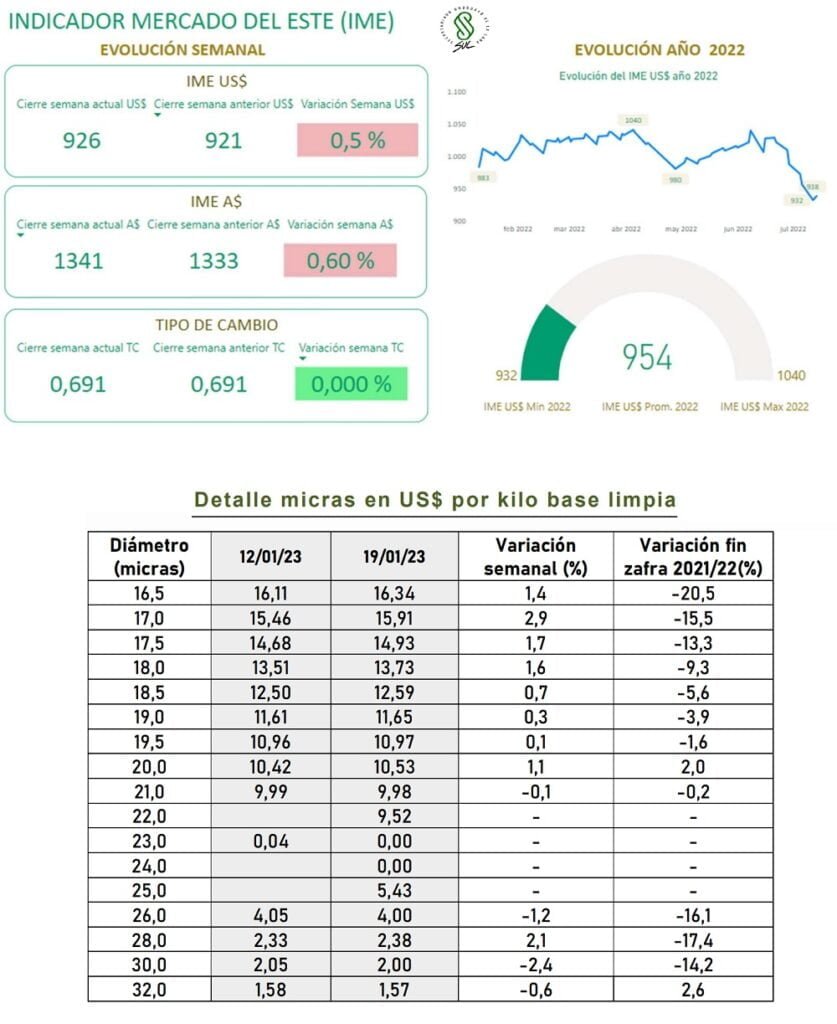 Montevideo | Todo El Campo | El Indicador de Mercados del Este (IME) mostró un comportamiento similar al de la semana pasada, marcando subas moderas en ambas monedas, informó el Secretariado Uruguayo de la Lana (SUL) en su reporte semanal.