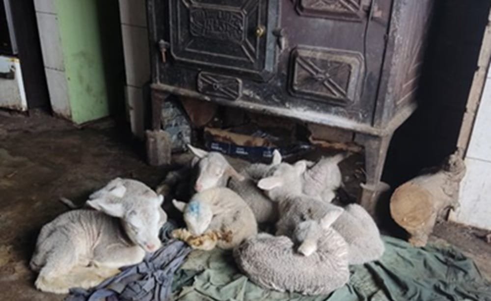Foto de portada: corderos se calientan junto a una cocina a leña | X Gustavo Almassio @galmassio