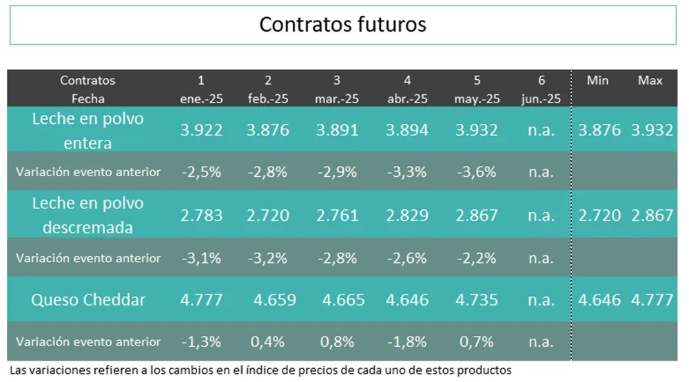El producto que más bajó fue la grasa butírica anhidra (3,8%) y la leche en polvo descremada (2,9%) como entera (2,9%).