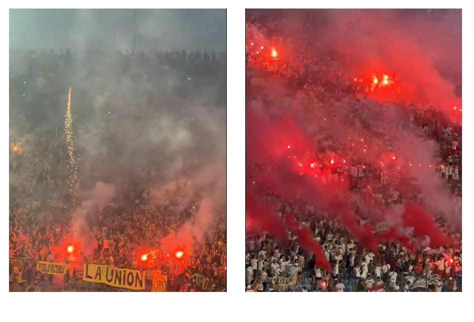 Por supuesto que las bengalas están prohibidas, pero las tribunas rebosan de ellas.