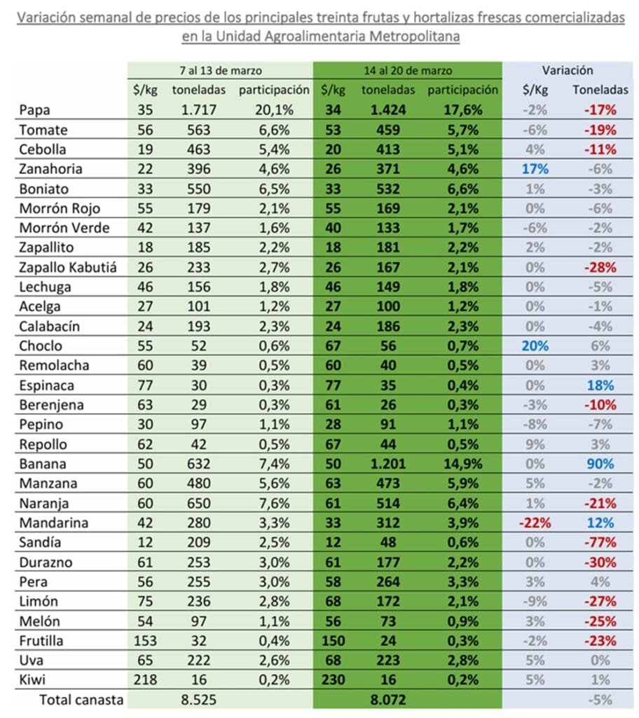 Para las cebolla y ajo, la oferta continúa siendo abundante, con predominio de partidas de buena calidad comercial y aptitud para conservación, lo que mantiene precios relativamente estables.