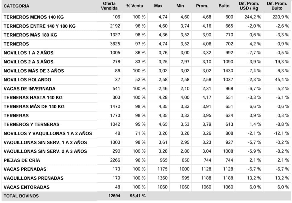 Montevideo | Todo El Campo | Pantalla Uruguay vendió un total de 12.694 vacunos, el 95,41% de la oferta total, en lo que fue el remate 309.