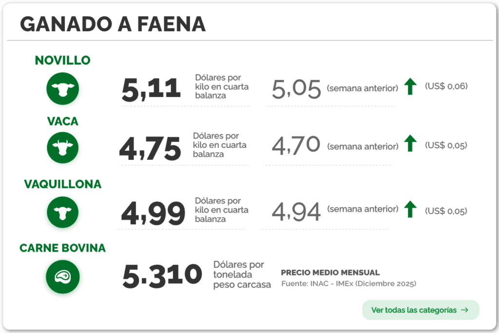 Montevideo | Todo El Campo |El mercado sigue mostrando signos de firmeza pero la oferta es la que esta faltando,de todas fue una semana con una faena de arriba de cuarenta mil reces,mas exactamente 40.844