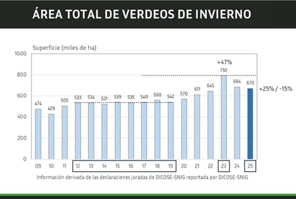 En cambio, con raigrás, el otro gran verdeo, “la fecha de siembra es marzo y recién ahora nos estamos empezando a animar” a trabajarlo.