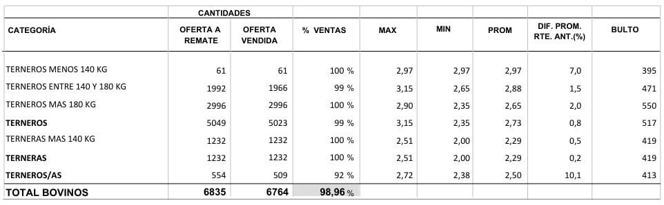 El remate, que fue transmitido por Todo El Campo, registró aumento de los valores respecto al remate anterior, cosa que se esperaba sucediera dada la calidad de la oferta Angus y Hereford.