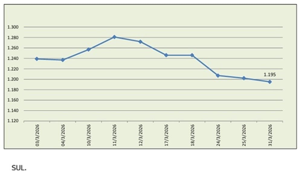 La semana siguiente (del 5 al 11 de abril) no tuvo operaciones comerciales en Australia por el receso de Pascuas, retomando la actividad el martes 14 con una nueva suba del 3,9% posicionando el promedio en US$ 12,82.
