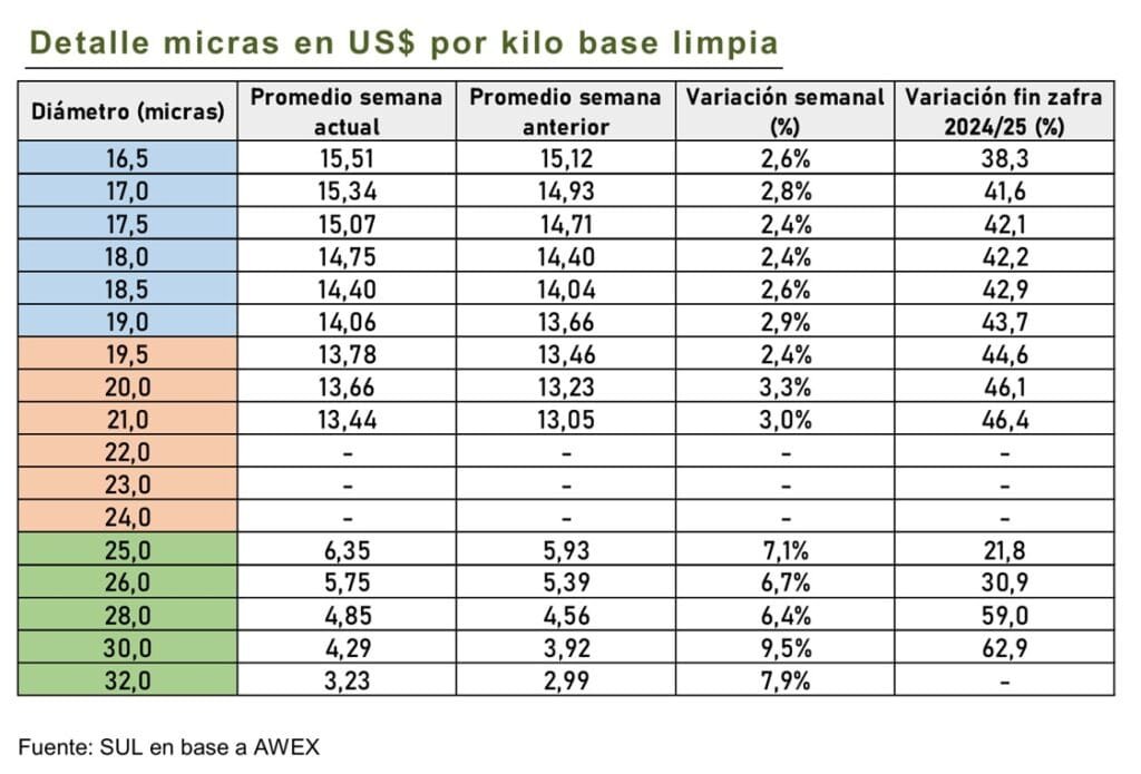 El informe del Secretariado Uruguayo de la Lana (SUL) reportó que el mercado australiano volvió a subir esta semana, consolidando las fuertes ganancias previas.