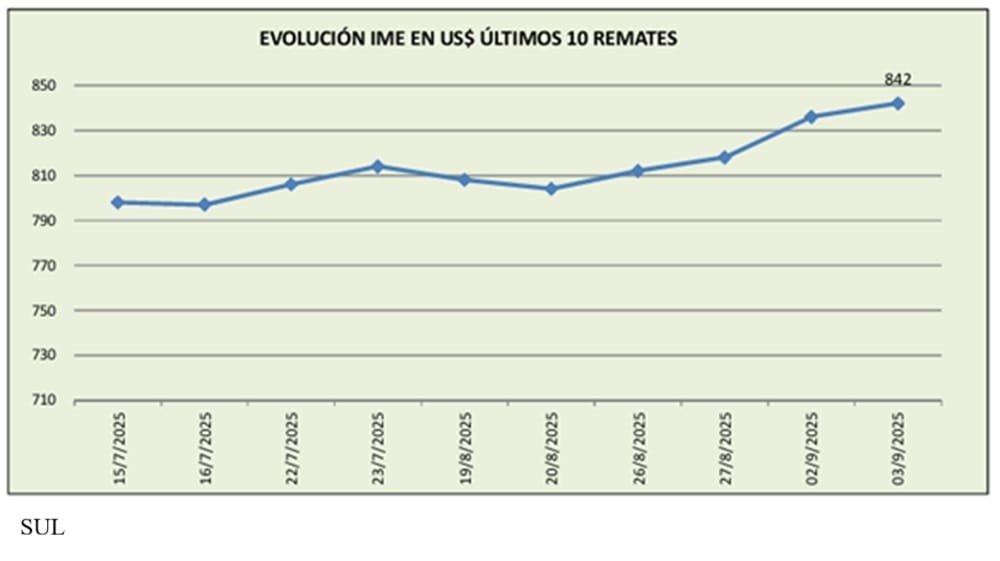 Montevideo | Todo El Campo | El Indicador de Mercados del Este (IME) se encuentra en su nivel de cierre semanal más alto desde mayo 2023, tanto en dólares australianos como estadounidenses, informó el Secretariado Uruguayo de la Lana (SUL) en el boletín semanal.